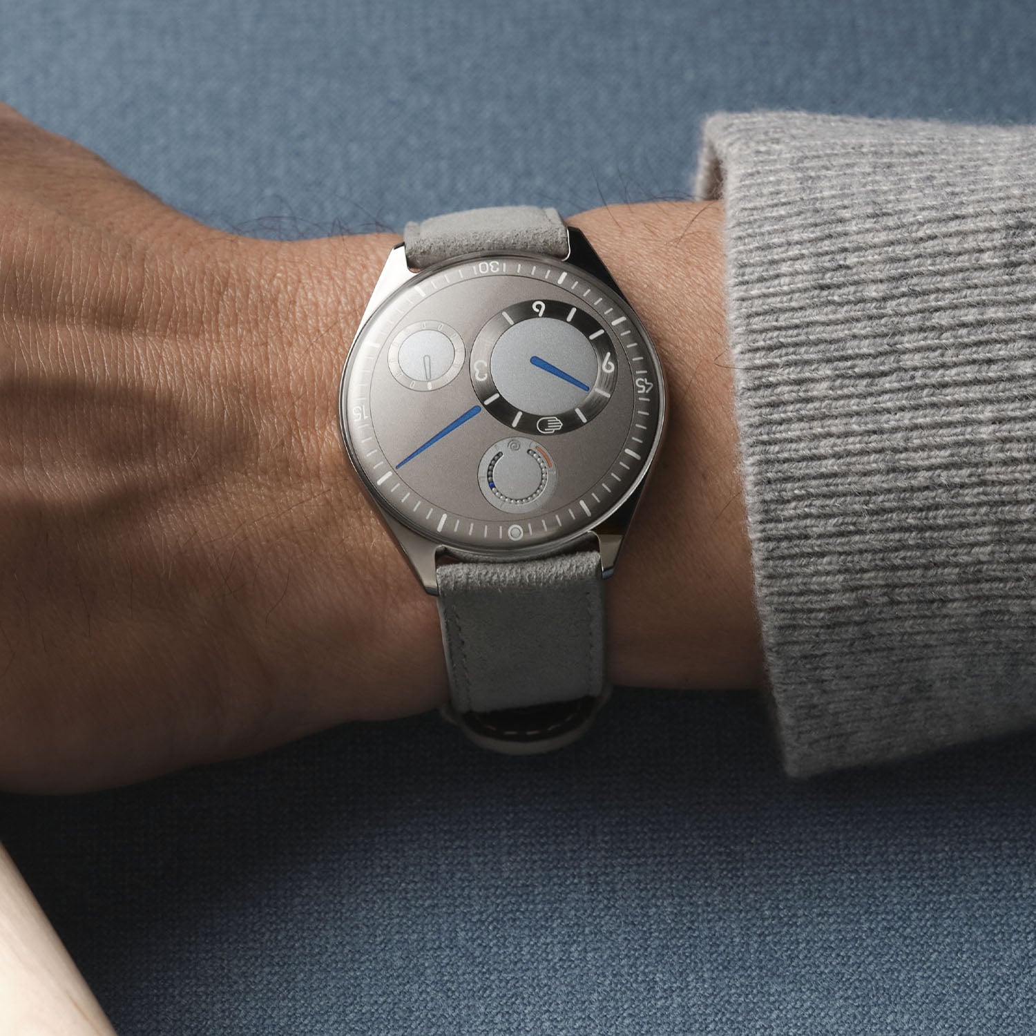 The new Type 11 can be paired with three straps – leather, rubber or a leather-rubber hybrid – and a rarer titanium Milanese mesh bracelet. Combining the metal’s low weight with its exceptional resilience, this is the sleekest option.
