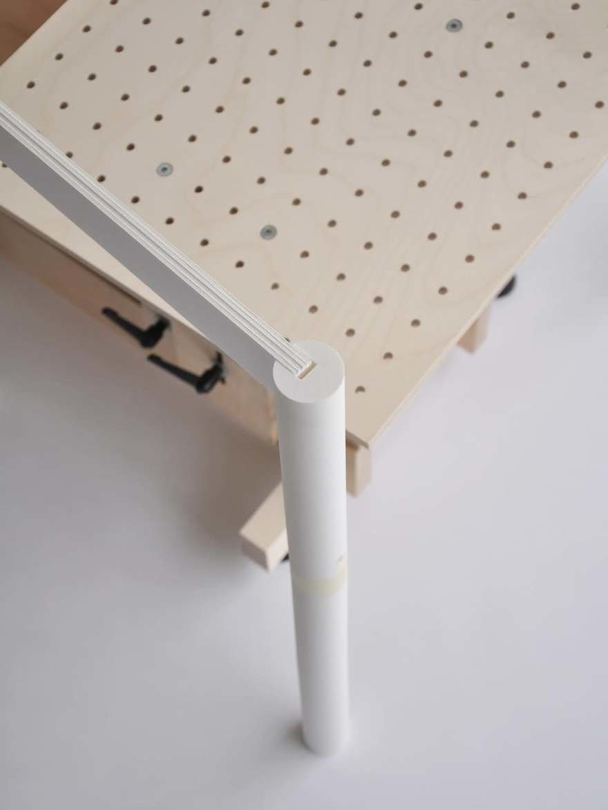 We’ve got a thing for chair bucks, because lots of industrial designers use them, but they’re rarely seen. Today we’ve spotted another, this one by Paris-based industrial designer Timothée Mion. Mion uses his to dial in the heights and angles of the contact points, then physically “sketches in” hypothetical supports.