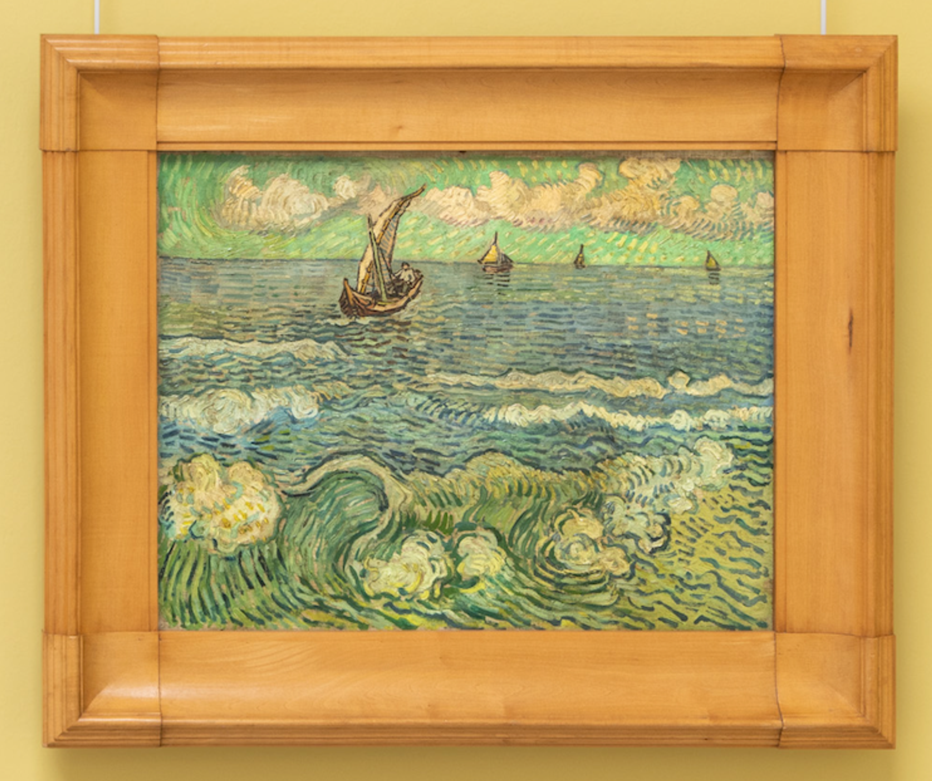 Virtually all the historic Van den Bosch frames were discarded in the 1950s, but, because the seascape had by then been downgraded, it was kept in store in its earlier frame. In 2003 the museum decided to reframe all of its Van Gogh paintings with replica Van den Bosch frames, using the forged seascape’s surviving frame as a template.