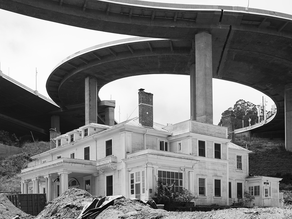 Working in and around San Francisco, Plumb photographs the grand yet fragile beauty of the American West and the peculiarities of urban life with a distinctively raw visual approach. She skillfully renders California’s notoriously intense sunlight in gritty black-and-white images to amplify the psychological tension and imaginative possibilities that define turbulent times. The White Sky (1972–1978) captures the final glimmers of innocence and optimism during the years following World War II, as cracks in the façade of the American Dream began to widen. Landfall and The Golden City (1984–2020) present a society descending into chaos as an ambiguous disaster looms. The Reservoir (2021–2025) conveys a stark and desolate world seemingly in the aftermath of a powerful, undefined apocalypse. Across these bodies of work, Plumb mournfully charts how persistent unease continues to manifest from the dark realms of imagination into pressing realities.