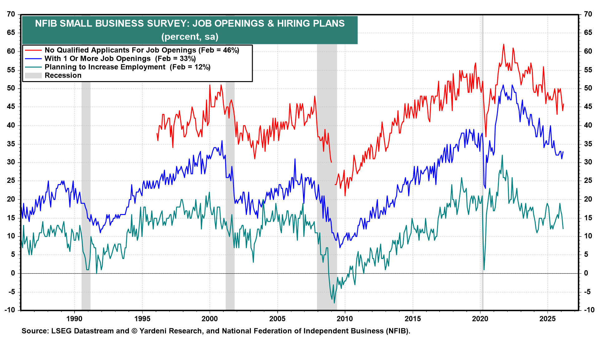 We will also be watching the labor market indicators in the NFIB survey for indications that the war is depressing hiring plans (chart).