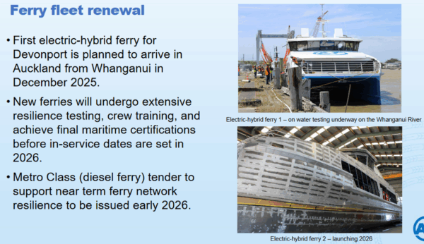 However: AT has also just ordered four brand new 100% diesel ferries. Why? Because the current government refused to co-fund these vessels if AT specified any other propulsion technology. Which is as incomprehensible as it depressing.