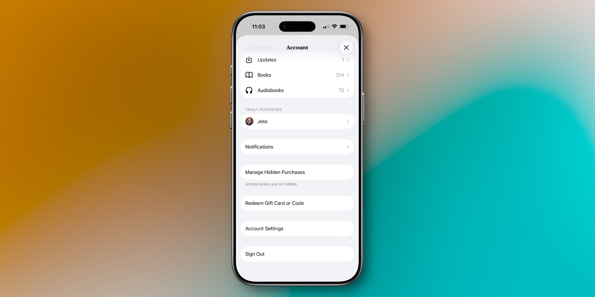 Inside the Apple Books app, Apple has yet to adopt the new Apple Account design. Though hopefully that will change in a forthcoming update.