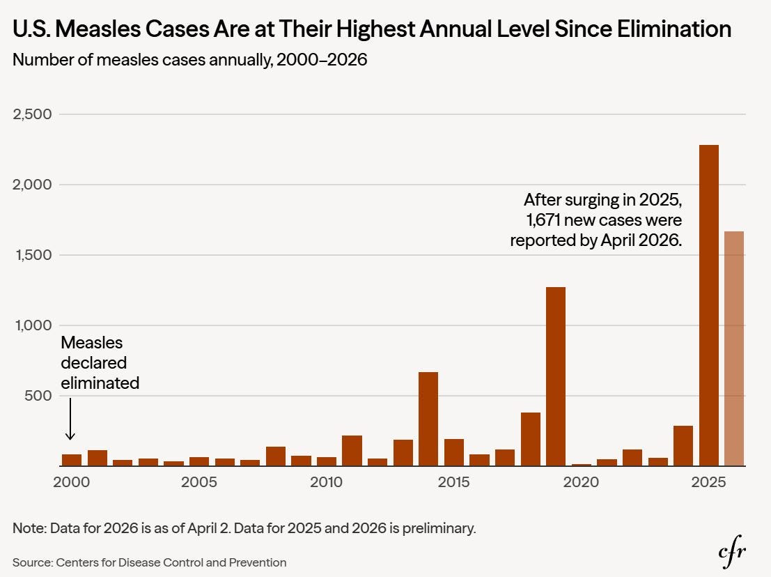 Yes, but then no. In 2000, the measles had been eliminated in the United States. But by 2025, the U.S. cited more than 2,200 measles cases that year alone. We’re not even halfway through 2026, but at least 1,600 cases of measles have been confirmed so far.