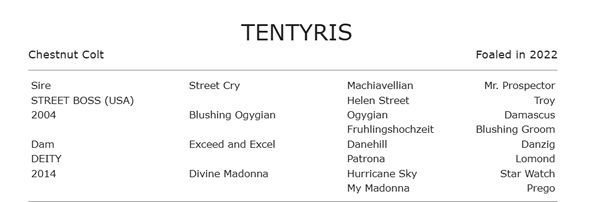 At two, Tentyris won the G2 Todman Stakes and finished a short head second in the G1 Blue Diamond, placing him among the leading juveniles of his crop.
