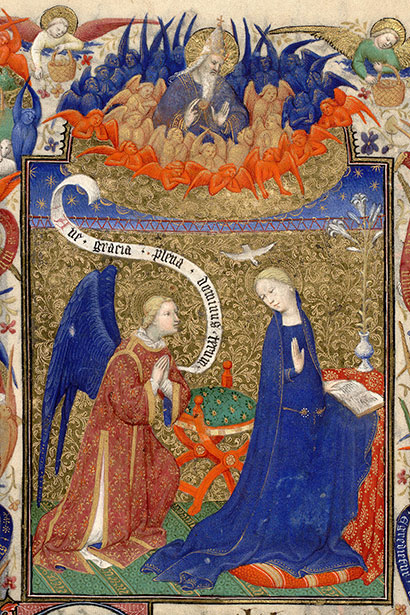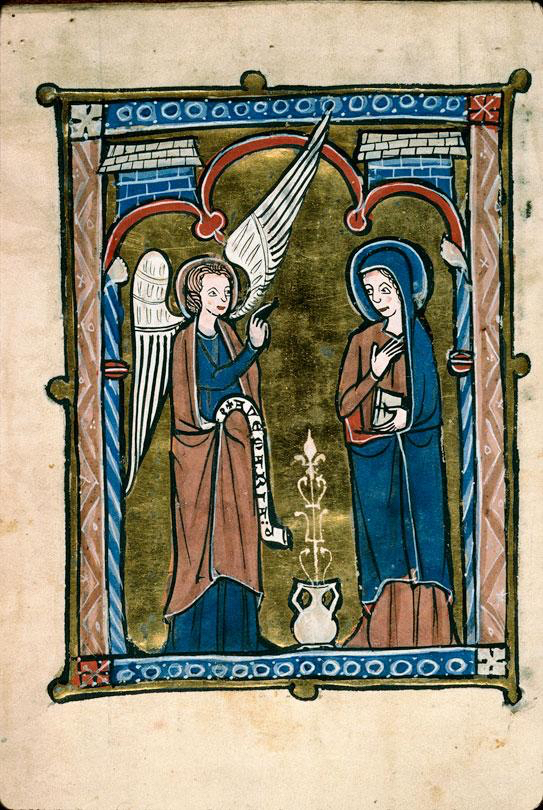Are you familiar with the whole annunciation painting concept? Basically, they’re paintings (or illustrations or whatever) that show the moment when the angel Gabriel takes a business trip down to Earth to let Mary, as in the Virgin, know that, incredibly, she’s been knocked up. And will have a child who will become the Christ! It’s a pretty intense moment.