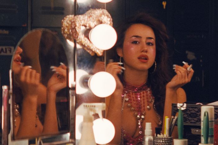 The nightlife, the fact of her being a stripper and being so in contact with drugs — these are all experiences that I’ve never had, and I really had to do the exercise of trying to understand her choices, her strengths and weaknesses, her past experiences. During my audition process, Anora was coming out, and I remember Mikey Madison doing a beautifully amazing job with the story that she was given, and it was really inspiring. So I watched that and used it as a reference and an inspiration. I watched a lot of YouTube videos and went sneaking into strip clubs in L.A. to just see the dynamics and understand the mood and tone of those settings. I didn’t have any pole-dancing experience, so I spent a lot of time dancing just to give her body its movement, and the attitude and height that she has, even down to her grammar and her accent.