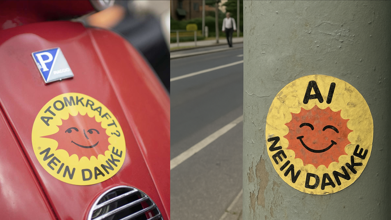 Two images showing different generations of a common German technopolitical subculture, each mobilized around the popular refusal of complex large-scale infrastructure, both with self-defeating consequences.