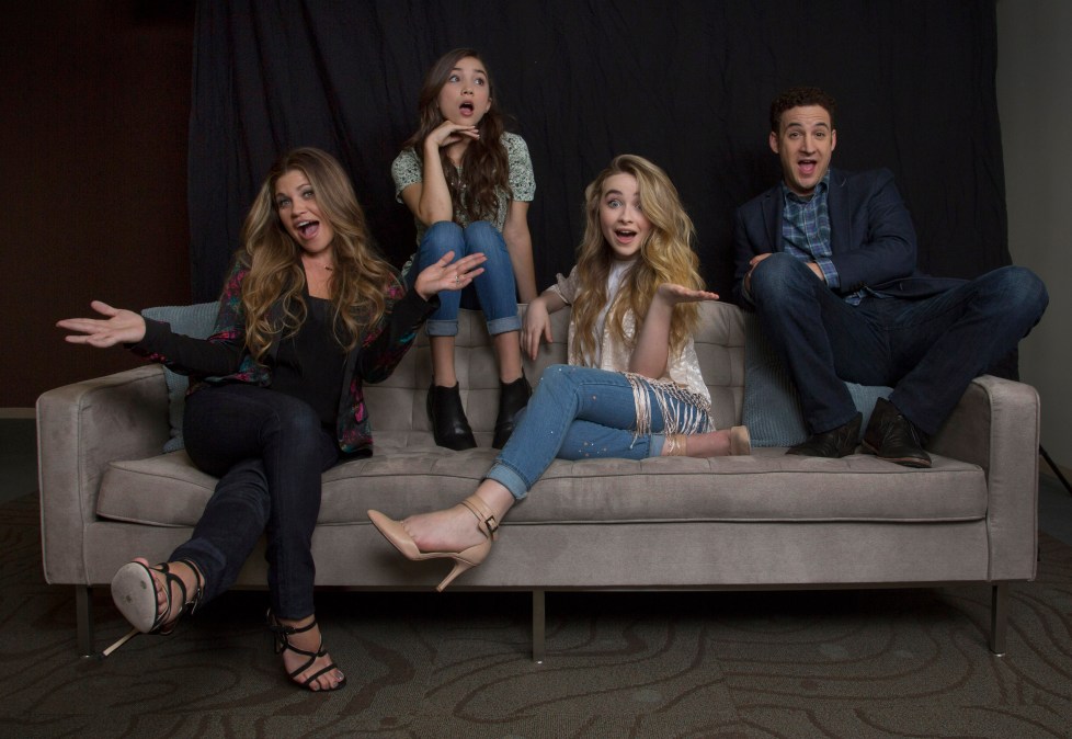 Cast members of “Girl Meets World,” Danielle Fishel, Rowan Blanchard, Sabrina Carpenter, and Ben Savageare photographed at the Disney Channel Offices in Burbank. (Getty Images)