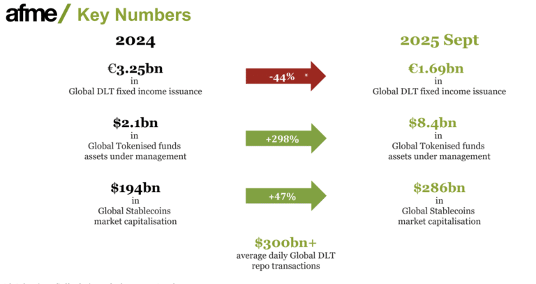 A total of €1.69bn in DLT-based fixed income instruments have been issued globally as of September 2025, according to a report from The Association for Financial Markets in Europe (AFME).