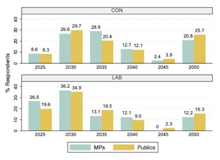 Our study, published in the journal Communications Earth and Environment, found that across Britain, Canada, Chile and Germany, about one-third of respondents thought emissions only had to peak by 2040 or later. In the UK, we also surveyed MPs. We found Labour politicians were more likely than Conservatives to answer correctly, but overall awareness was low in both groups.