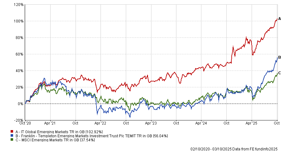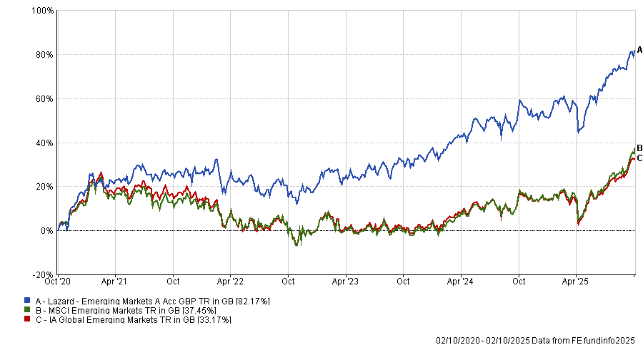 Launched in July 2018, it has scored top-quartile returns over five years (as shown in the chart below), but 2025 has been less favourable so far.