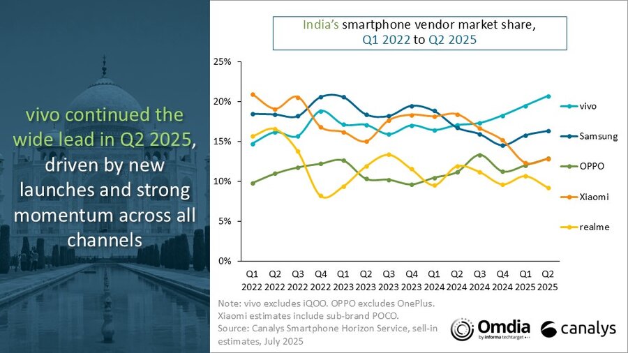 “vivo’s new launches were widely embraced by channels, driven by strong partnerships, while rivals maintained a more measured approach in Q2,” said Sanyam Chaurasia, Principal Analyst at Canalys (now part of Omdia). “The V50 series gained traction in Tier 1 and Tier 2 cities via large-format retail and wedding-led campaigns, while the Y-series sustained momentum in smaller cities and semi-urban markets through deep distribution and promoter push. The T-series also scaled steadily online with a broadened portfolio.”