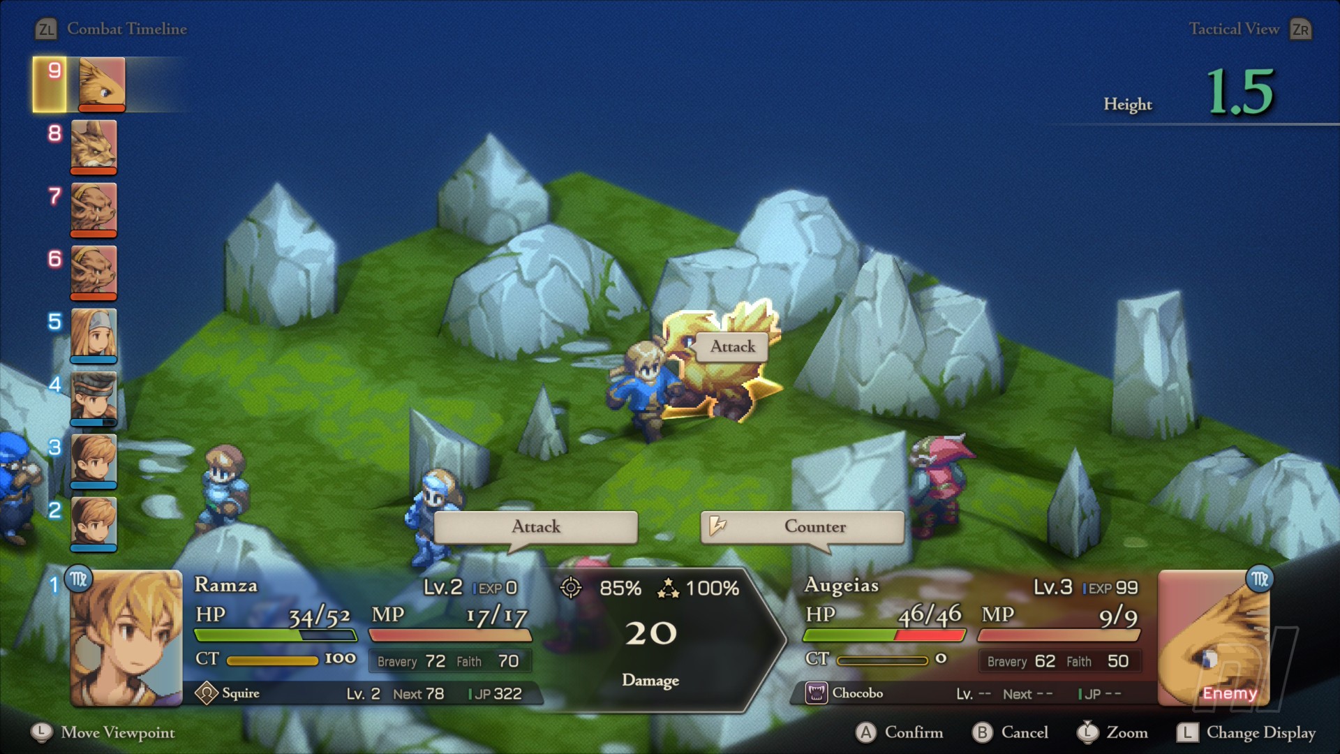 With regards to gameplay, the biggest changes have happened pre-battle. Here you are now free to select characters and drop them into position on the map, a map that you can also now cursor around freely, hovering over enemies for details and so on before the action kicks off. It’s therefore much easier to get the lay of the land. You can also change jobs, swap equipment, and learn new abilities in the pre-battle period, which makes a huge difference in how things flow into the meat of the game.