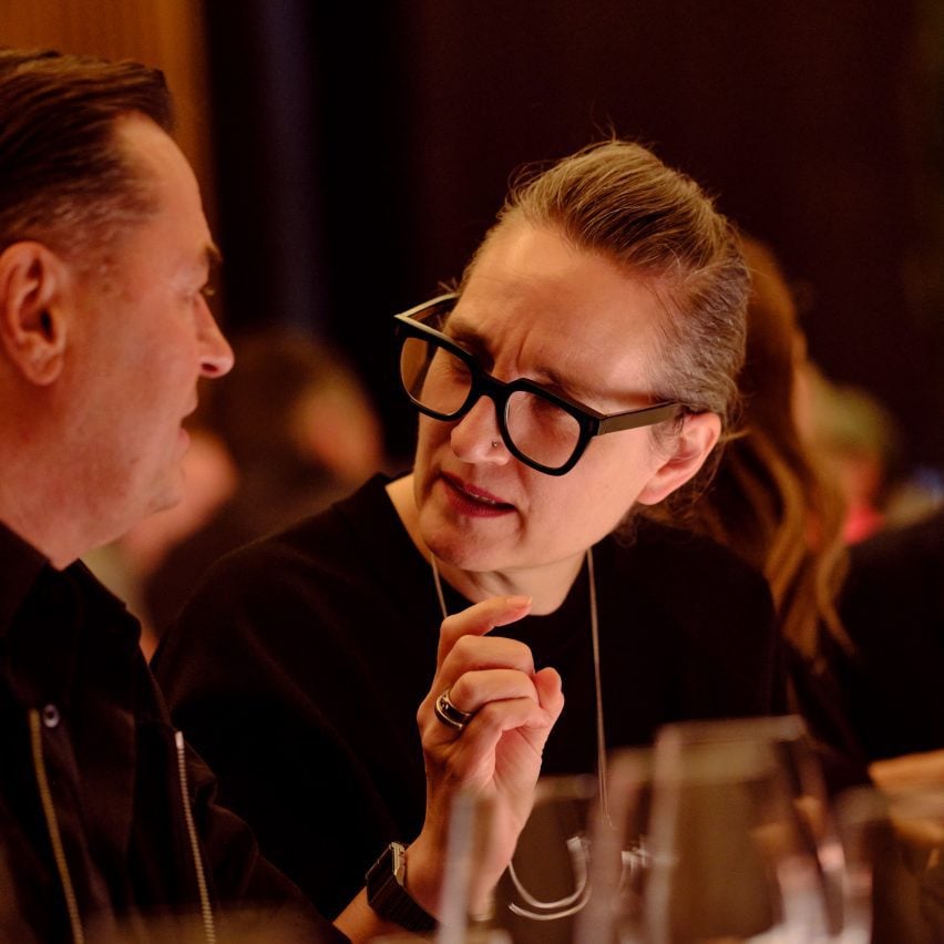 Former Dezeen Awards judges Patrik Schumacher and Tina Norden joined for the exclusive dinner at One Hundred Shoreditch
