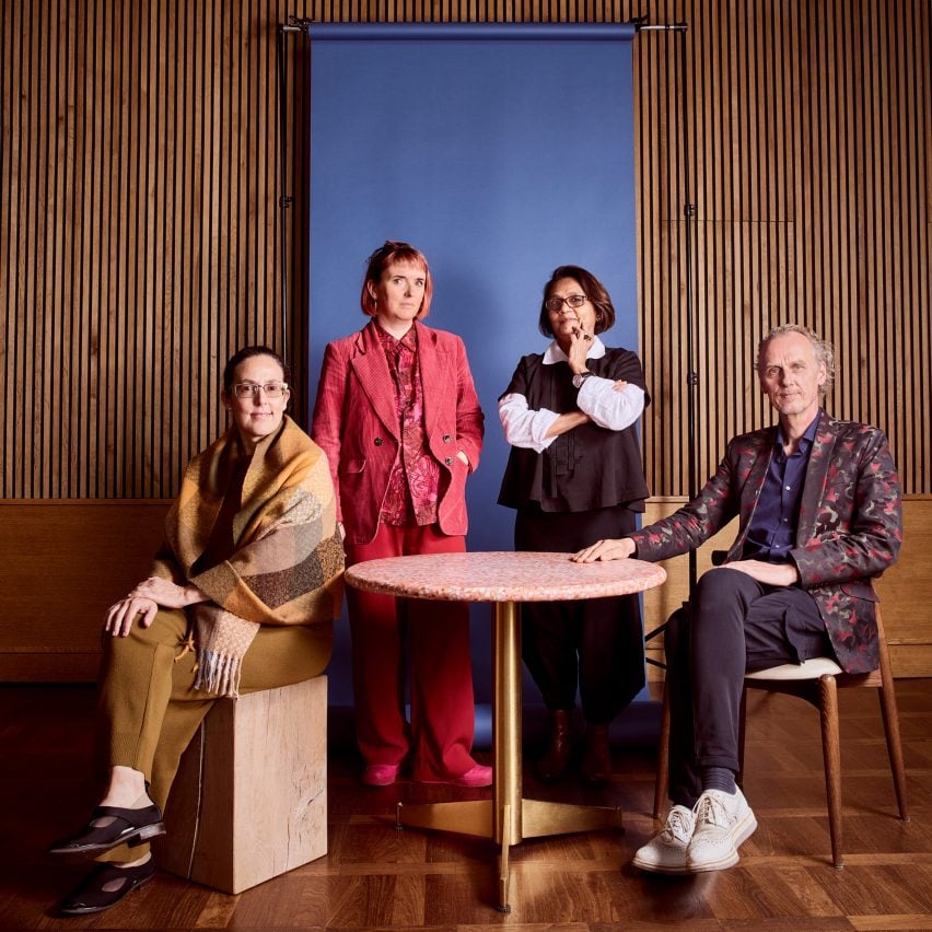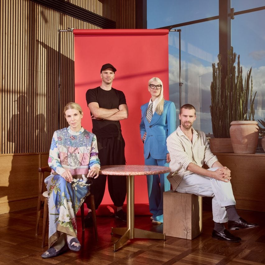 Top image: The Dezeen Awards 2025 master jury. Above: (L-R) Helle Mardahl, Benjamin Hubert, Sofia Lagerkvist and Laurids Gallée at the master jury day at One Hundred Shoreditch