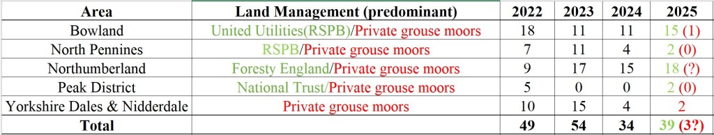 Natural England has finally got around to publishing the data for the 2025 Hen Harrier breeding season, which demonstrate very clear differences between areas managed for conservation and those managed as privately-owned grouse moors.