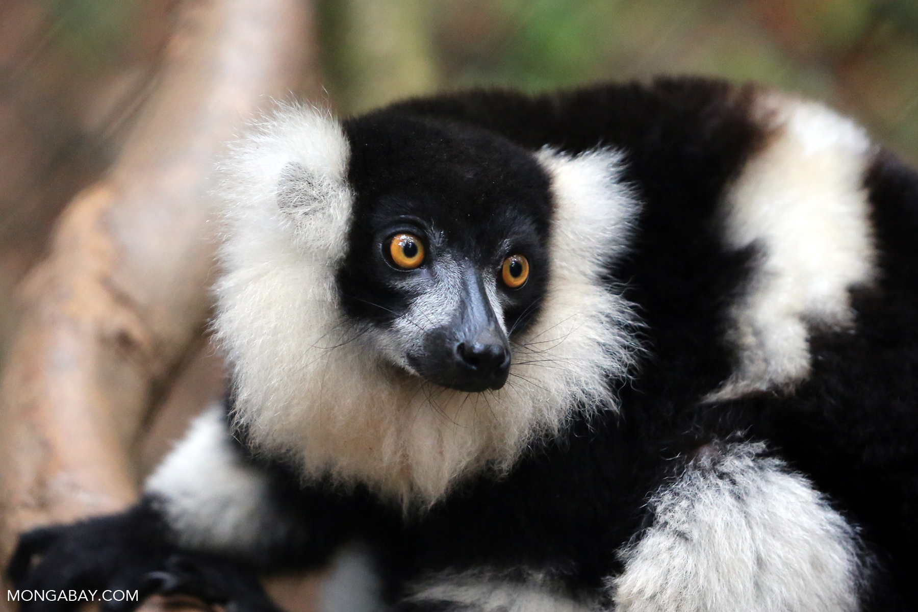 A black-and-white ruffed lemur (Varecia variegata), an endangered species of ruffed lemur. Traders hunting lemurs for the urban luxury market are after large-bodied species like brown and ruffed lemurs. Image by Rhett A. Butler/Mongabay.