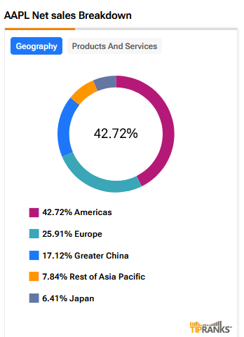 The indication is that without those struggles sales could have been even higher. That in turn will put even more pressure on Apple in China, which can be seen below is an important market for the group.