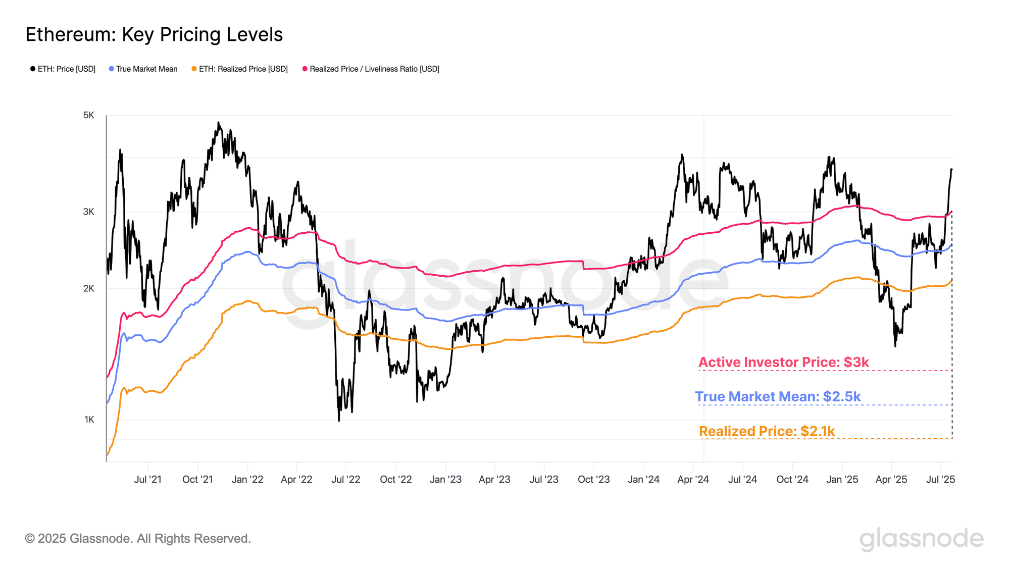 True Market Mean: $2,500Active Realized Price: $3,000Realized Price: $2,100