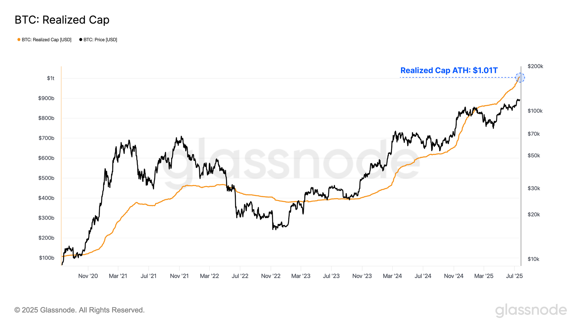 Executive SummaryBitcoin’s realized cap reaches the $1 Trillion mark for the first time. This is truly a monumental milestone for Bitcoin, highlighting its deep liquidity profile, and growing relevance on the macro stage.All altcoin sectors are now outperforming Bitcoin across the last week, led most notably by Ethereum. This has resulted in an Altcoin Market Cap increase of +$216B over the past two weeks.Open interest across the top altcoins has surged higher from $26B to $44B across the month of July. Elevated leverage tends to amplify both upside and downside volatility, and can contribute to a more reflexive and fragile market environment.Ethereum has decisively broken through many key on-chain resistance levels including the Active Investor Price and True Market Mean. However, a substantial uptick in sell-side pressure is expected around the $4.5k region.A Trillion Dollars