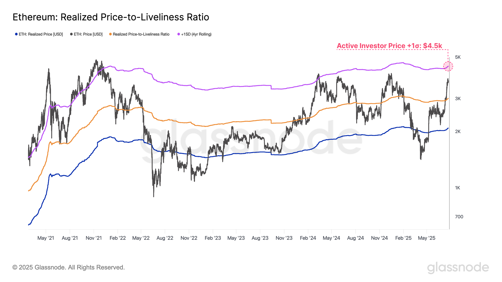 In order to gauge upside targets for this ETH rally, we can turn to the +1 standard deviation band of Ethereum’s Active Realized Price. This acts as a threshold for where sell-side pressure may begin to intensify. Currently, this +1σ level sits at $4,500, and would be considered an overheated zone given current market conditions.