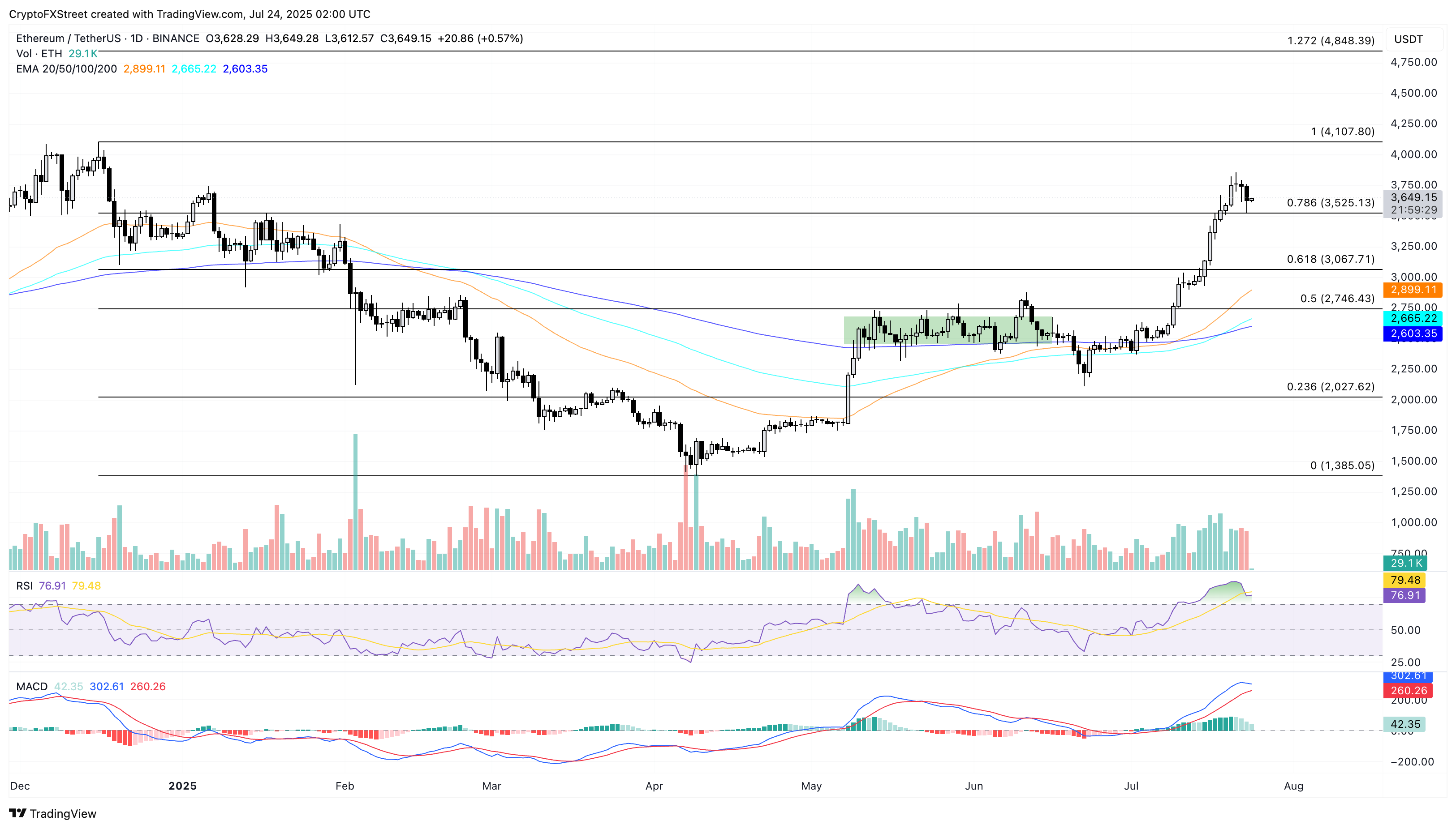 On the downside, if ETH marks a decisive close below the $3,525 level, it could extend the declining trend to the 61.8% level at $3,067.