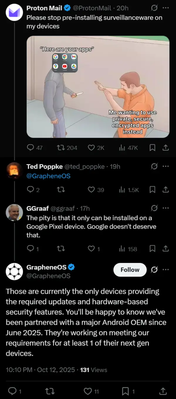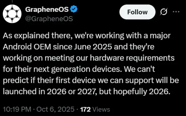GrapheneOS, the privacy-focused Android operating system that has spent years exclusively supporting Google Pixel devices, might finally be breaking free from its Google hardware dependency. The project recently confirmed it has been working with a major Android manufacturer since June 2025, with plans to support at least one of their next-generation devices.