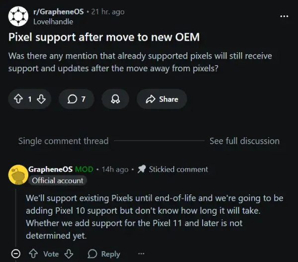 For existing Pixel users, GrapheneOS plans to maintain support for current devices until their end-of-life dates. The team is working on adding Pixel 10 support, though the timeline remains unclear. Whether they’ll support Pixel 11 and beyond hasn’t been decided yet.