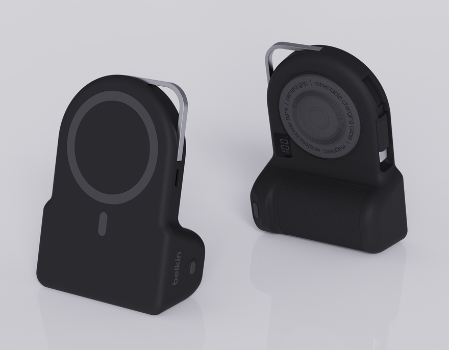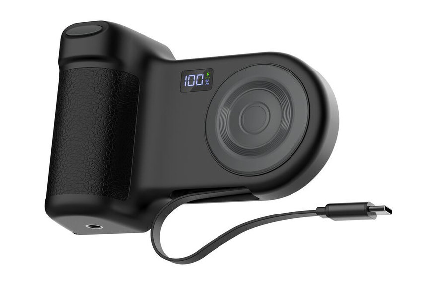 It attaches magnetically, and can be used in either portrait or landscape orientations. There’s also a physical shutter button, which works via Bluetooth.