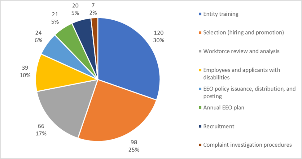 Specifically, EEPC: developed timelines to complete tasks; created a welcome information session to inform agencies about expectations; created manuals, templates, and other documents to guide analysts and other internal staff; and shortened the “Compliance-Monitoring” period.[1] The start time for the next quadrennial cycle’s audit plan is based on when the FD for an agency is issued. EEPC aims to issue FDs within the same calendar year that related audits are initiated.