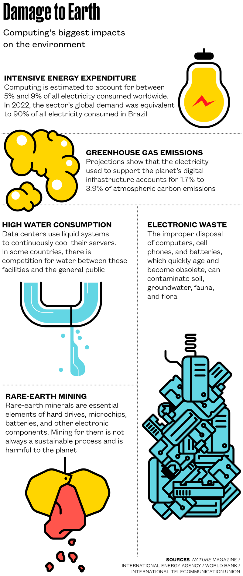 Computers, an essential part of modern life, are now everywhere. It is difficult to imagine a world without digital technology such as the internet, social media, video streaming services, artificial intelligence (AI), and the vast range of apps we use every day. Governments, organizations, and companies across all sectors are increasingly relying on information and communication technologies (ICT). The rise in computational demand, however, is having an impact on the environment. It is estimated that the ICT sector accounts for 5% to 9% of total electricity consumption worldwide. The International Energy Agency (IEA) has warned of a major upward trend in this demand. According to the agency, the global energy consumption of data centers (which have enormous data storage and processing power) and the AI and cryptocurrency sectors in 2026 could be double the level of 2022, when it amounted to 460 terawatt-hours (TWh). In the same year, Brazil consumed 508 TWh of electricity.