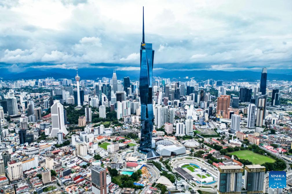 This photo taken on Oct. 25, 2025 shows Merdeka 118, the venue for the China-U.S. economic and trade talks, in Kuala Lumpur, Malaysia. The Chinese and U.S. delegations convened on Saturday morning for talks on economic and trade issues. (Xinhua/Zhu Wei)
