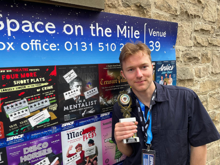 Angus with the Derek award at the Edinburgh Fringe Festival (image supplied)