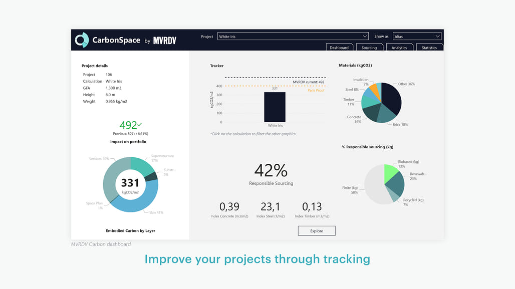 The tool integrates with Rhino, Revit, and Microsoft Power BI via an open API, allowing users to generate custom dashboards and visualize project performance. MVRDV has employed the tool internally to monitor the carbon footprint of its portfolio and progress toward 2030 climate goals. The tool is not the first to be developed by MVRDV, with MVRDV NEXT also launching a tool in 2022 to aid design possibilities for Rotterdam’s rooftops.
