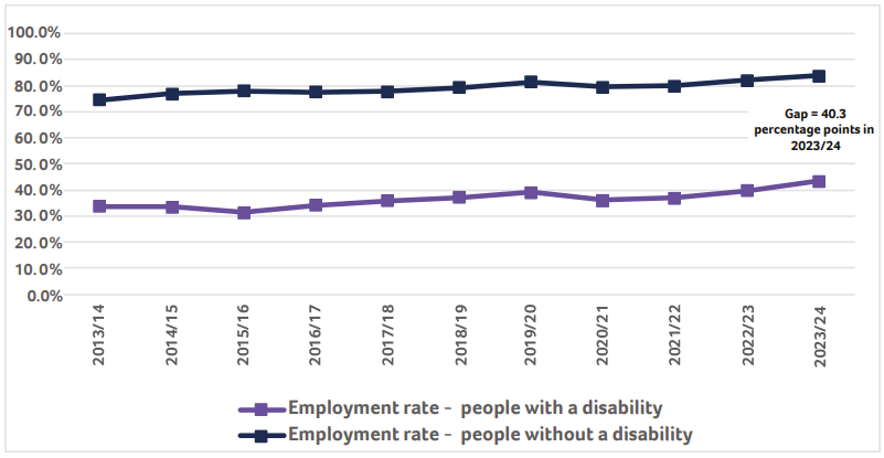 These figures are not the same as those quoted by Ms Guy, which are from 2021, although it is also worth noting that there has not been a major shift in either the disability employment rate or the rate for those without disabilities.