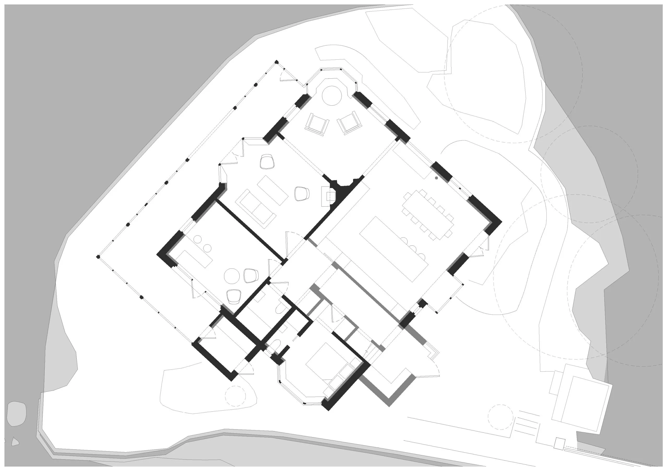 The floor plan was significantly reconfigured while retaining the existing window and door openings to preserve the buillding’s external appearance. Along the ground floor, the key living spaces were opened up so that the kitchen, dining room and living room address the sea.