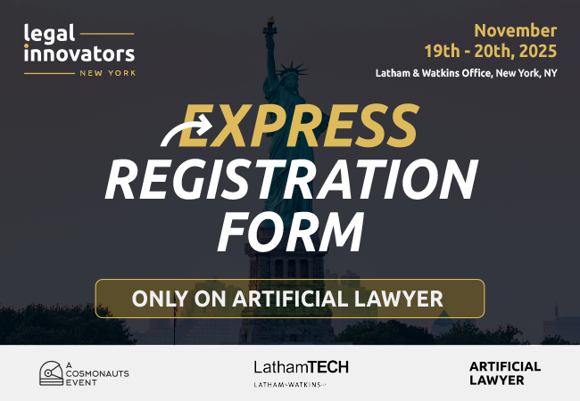 If you’d like to take the speedy boarding route to Legal Innovators New York, on Nov 19 and 20, then please sign up here – which is free to attend for those at law firms and inhouse.