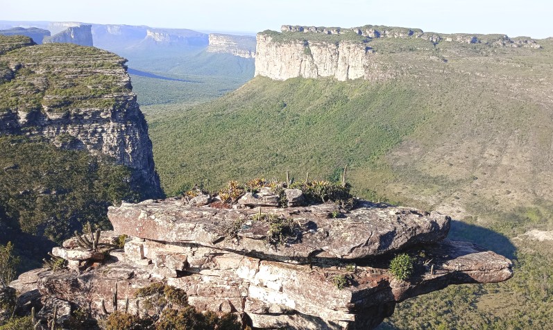 A view of Chapada Diamantina National Park. The 152,000-ha park was created in 1985 with the help of American biologist Roy Funch, who arrived in the area in 1978 and still works as a local guide. The park comprises caatinga xerophytic formations, cerrado (a type of tropical savanna) Atlantic Forest vegetation, meadows and rocky plateaus (chapadas):
