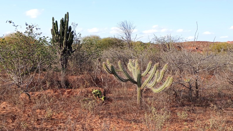 These two cacti are some of the caatinga‘s most ubiquitous sights: mandacaru (Cereus jamacaru) on the left, and xique-xique (Xiquexique gounellei). They both look disagreeable desert denizens to be kept at arm’s length, but there’s more to them than their sharp, painful thorns. These cacti are important fodder for cattle, goats and sheep in times of water scarcity (they are scorched slightly before being given to animals). Mandacaru‘s fruit feeds humans and wildlife, and its woody stem is valued in carpentry for its resistance to termites. Xique-xique flour can be added to goat’s milk for the production of yogurt with supposedly better probiotic quality: