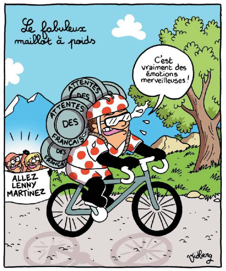 It was only in the summer that the cartoon by Martin Vidberg above depicted Lenny Martinez burdened by the weight of French expectations. Now his phone barely rings while Paul Seixas gets all the bother. Martinez had a good season, wins in Paris-Nice, Romandie, the Dauphiné and the Japan Cup probably saw him matching expectations. In March his Paris-Nice win in the vicious uphill finish was a triumph for a puncheur but could he he become a grimpeur? Yes or oui as we saw this in Romandie and his win in the Dauphiné’s final stage was exquisite for the cruelty of the way he played Enric Mas, he’s not someone to play poker against.