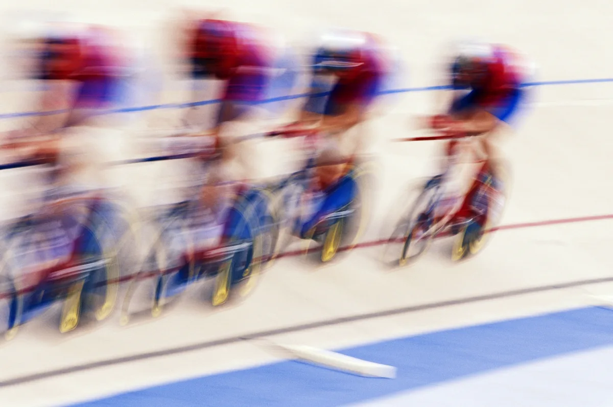 One crisp Thursday morning in mid-November, I lift a dusty track bike off the wall and wheel along to the early vets training session.