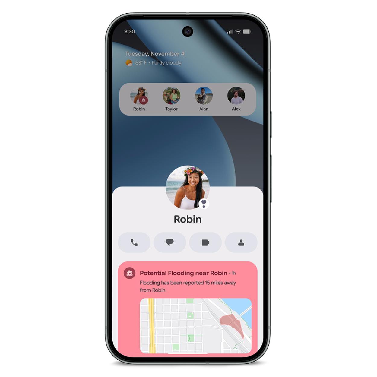 The VIPs (Google Contacts) homescreen widget now shows a crisis badge when a person’s address is facing flooding, wildfires, or other severe weather alerts. Opening the VIP panel shows more details, with this joining the birthday reminders badge.Â