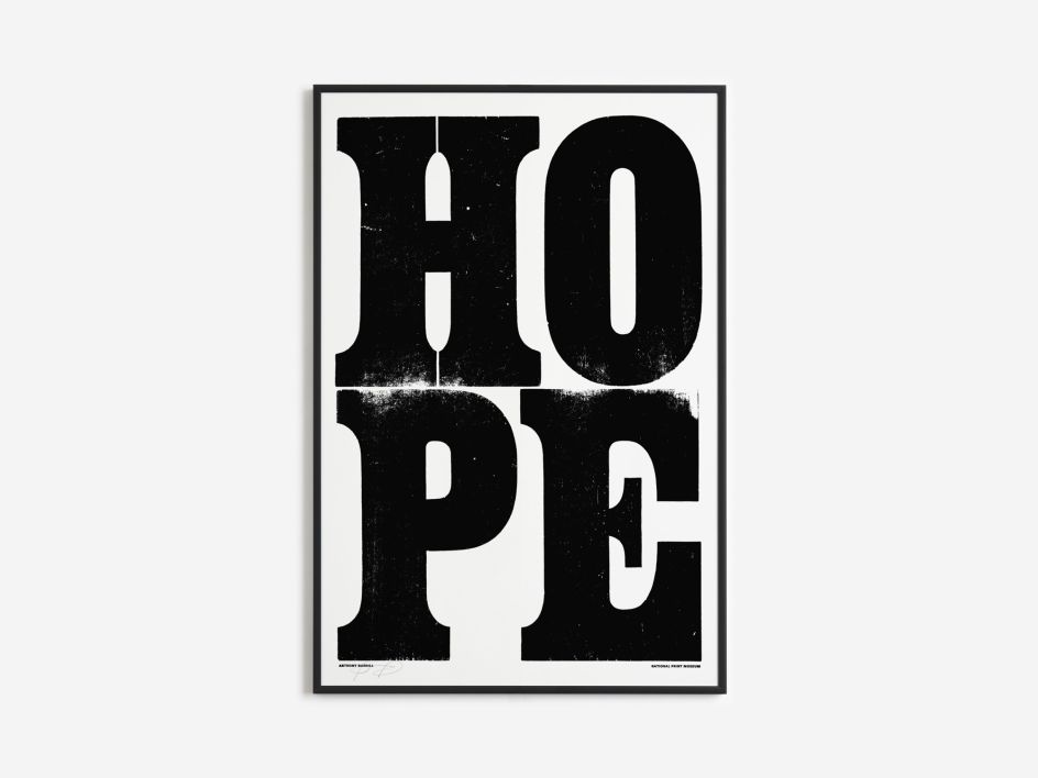 The poster is a visually and conceptually powerful composition that captures the tactile rhythm of letterpress and the emotional clarity of Burrill’s message. “We need to be reminded of the positive power of hope as the world goes through difficult times, and this print aims to capture that enduring spirit,” he adds.