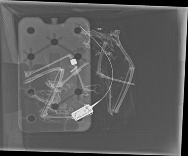 Radiograph of the carcass of HH 25483 and her satellite tag (photo by ZSL)