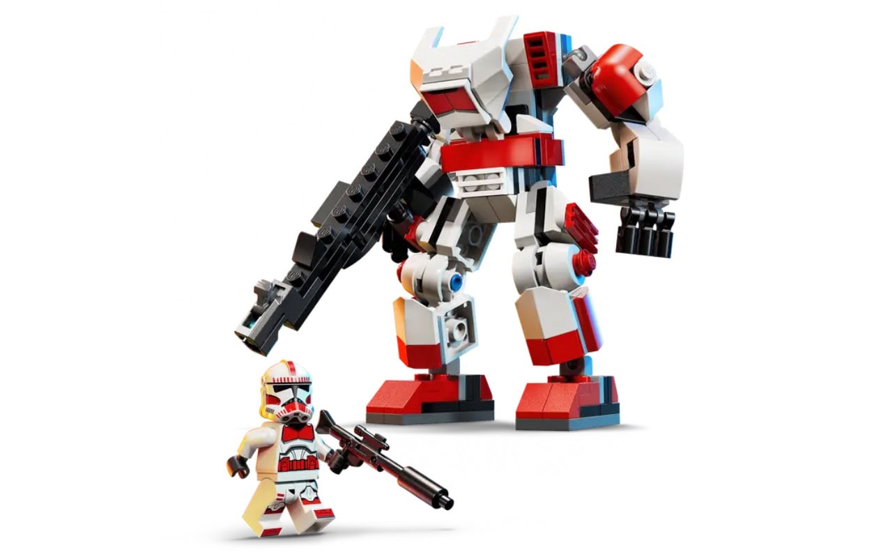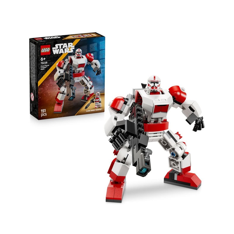 Give young children an exciting introduction to the LEGO® Star Wars™ universe with the Clone Shock Trooper Mech (75448). An awesome small gift for boys, girls and any Star Wars fans ages 6 years old and up, this posable mech figure is designed foran easy build so the action starts fast. Put the Clone Shock Trooper LEGO minifigure in the mech’s cockpit and clip its blaster rifle to the back of the mech. Adjust the mechs arms, legs and feet to create battle poses. Place the large blaster rifle in its gripping hands and activate its stud shooter. With its armor in the distinctive red and white colors of Clone Shock Troopers, the mech also looks cool displayed in kids’ bedrooms between playtime missions. This mech toy building set is part of a collectible series of LEGO Star Wars mechs (sold separately). Kids can build with confidence using the LEGO Builder app – zoom, rotate in 3D and track progress with easy-to-follow digital instructions. Set contains 151 pieces.