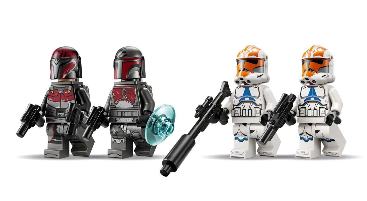 4 LEGO® STAR WARS™ MINIFIGURES – Equip the 2 Mandalorian Super Commandos with 2 jetpacks and 3 blaster pistols, and the 2 332nd Clone Troopers with a blaster and blaster rifle