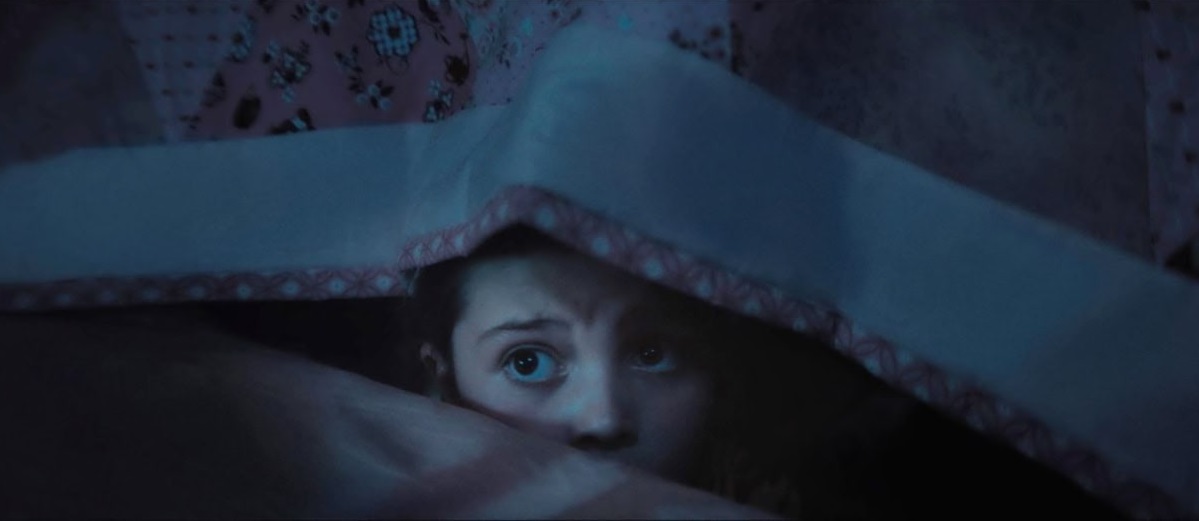 Terrified of the monster under her bed (a monstrously oversized dust bunny), Aurora’s (Sophie Sloan) parents naturally assume she is fibbing and that her fears are the result of a hyperactive imagination. Her parents are murdered offscreen, though, by something, and given that much of the film is from her perspective, that is accomplished through special-effects-driven moving floorboards and destruction. The monster also seems to come out only when someone touches the floor (which no one believes Aurora about), meaning the now-orphaned girl moves around her house in a makeshift boat. This also means that this is not the first time monsters have gotten her parents.