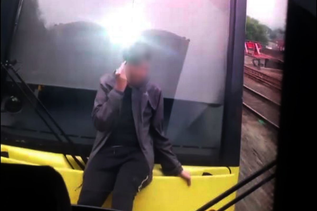 A tram surfer pictured in Rochdale in 2019(Image: Kayman Grant)