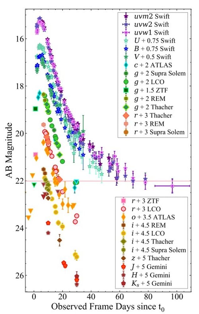 LFBOTs have puzzled astrophysicists for more than a decade, but AT 2024wpp and its extreme brightness may have helped them solve it. It’s given them an opportunity to observe it for longer and in more detail than other LFBOTs. Multiple telescopes and observatories have observed it in different wavelengths over time. “Despite being more distant (411 Mpc) than the closest known LFBOT AT 2018cow (60 Mpc), the extreme luminosity of AT 2024wpp ultimately enabled this well-sampled dataset…” the authors write.